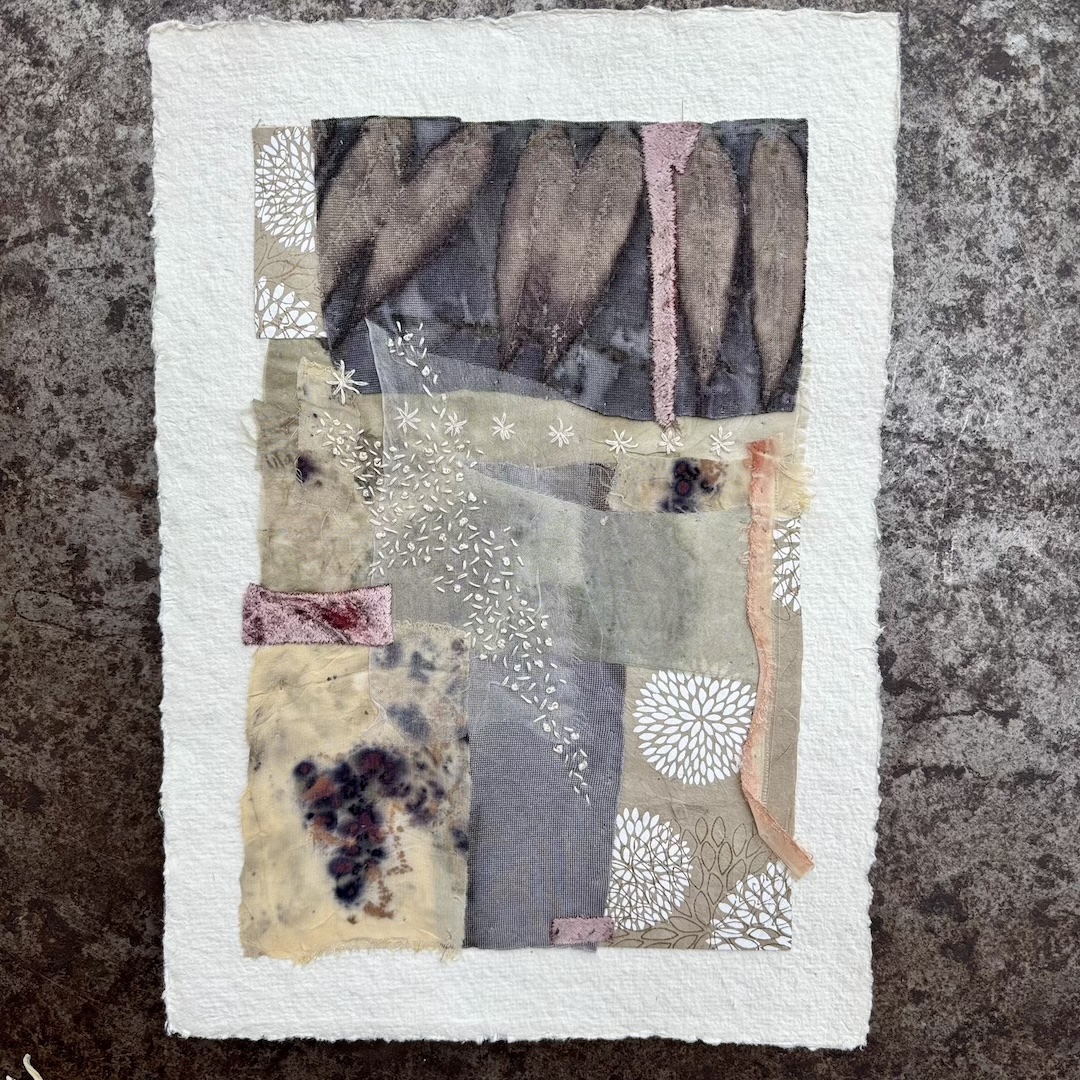 Textile Collage auf Büttenpapier