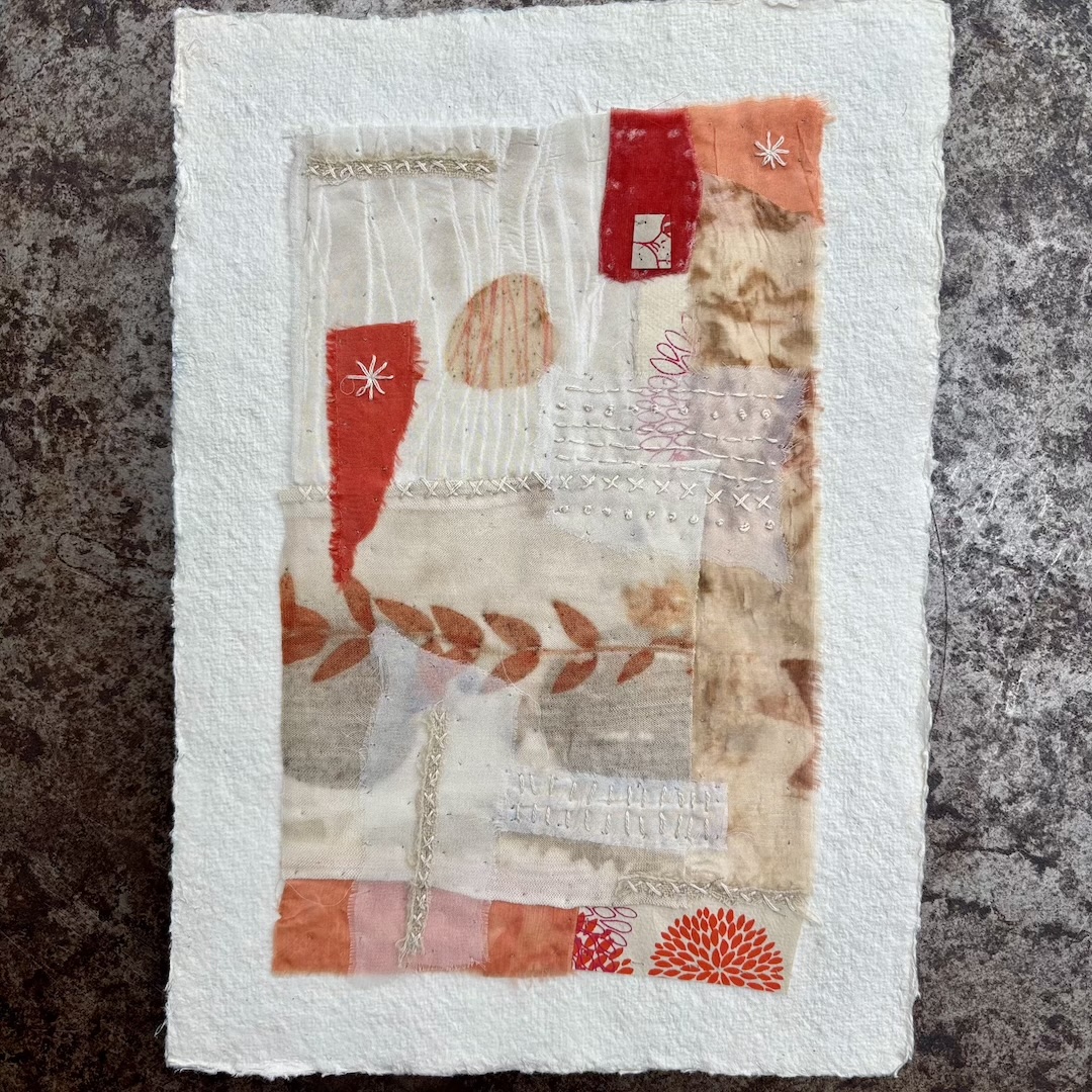 Textile Collage auf Büttenpapier